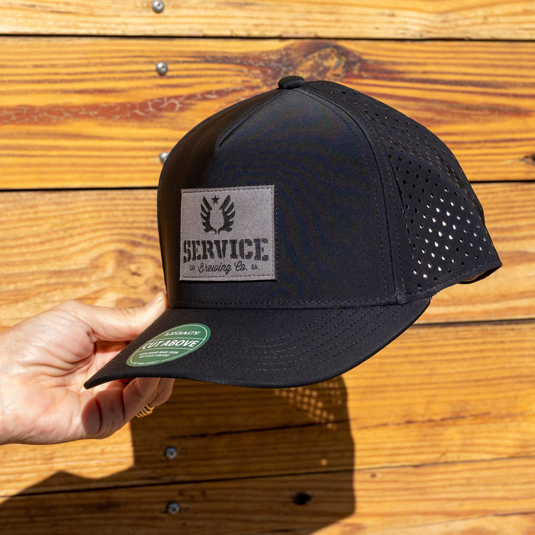 The Cut Above is a premium 5-panel baseball cap, it is constructed with 93% poly + 7% spandex fabric that has a touch of stretch for added comfort. The Cut Above also features a laser cut teardrop holes for ventilation fused neoprene liner, recycled visor board and soft snapback closure.
